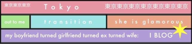 Tokyoites (mostly) not giving a rude fuck about someone in transition isn’t why we chose to move here but it is a decided perk.  It’s a strange and beautiful thing that the inhabitants of this city can be so conformist yet respectful of an individual’s self-expression.  Yes, there is a massive sea of businessmen and office ladies in their requisite suits and skirt-suits with black pumps, respectively, but behind those 9-5 (attached with massive overtime) outfits are characters who let all kinds of freaky flags fly into the wee hours, or not.  Point being that people here recognize and respect that everyone is multidimensional and who are they to judge?  Not only are there all kinds of daily queer sightings, gender-bending has always been a part of popular culture here, from the historic Noh theater to the beloved transsexuals on popular variety shows to the crossdressers in the cosplay neighborhood of the anime capital of the world.  In the states, especially in the South where we were living, there is no way she would have gotten the support she currently receives from her university peers, faculty and administration whilst transitioning. Just the other week, a very concerned teacher called twice, left a voice-mail and texted because she realized she had unintentionally hurt my girlfriend’s feelings and wanted to remedy the hurt and misunderstanding ASAP…that’s the thing about Tokyo.